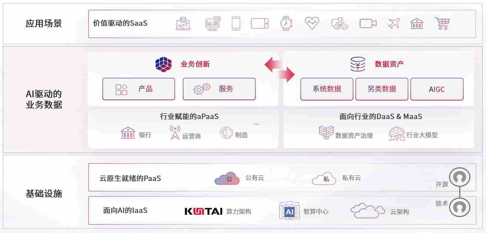 数字时代,,围绕企业数字化转型的关键要素,,,,Z6尊龙数码开创性的提出数云融合战略和技术体系框架,,,着力在云原生、、数字原生、、、、AI原生和信创产业上架构产品和服务能力,,,为处在不同数字化转型阶段的快消零售、、、、汽车、、、金融、、、、医疗、、、、政企、、、、教育、、、运营商等行业客户提供泛在的敏捷IT能力和融合的数据驱动能力,,,构建跨界融合创新的数字业务场景和新业务模式,,助力企业级客户建立面向未来的核心能力和竞争优势,,,,全面推动社会的数字化、、、智能化转型升级。。
